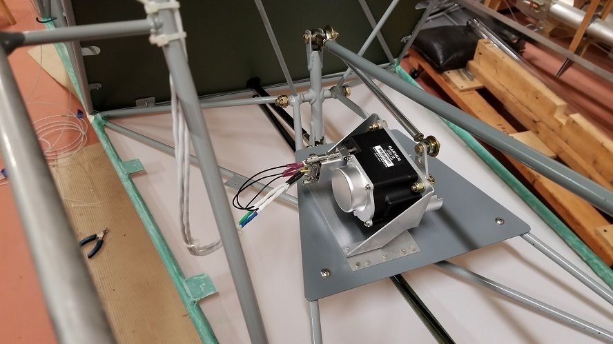 Не, не будет прогибаться, там все сурово сделано, серво раньше буксанет. Люминь от дорожного знака взят, 1,5 мм, на свалке купил за пару долларов две штуки. 😉 Плюс еще Гарминовский кронштейн для крепления серво к этой площадке приклепан, а он тоже из 1,5 мм алюминия сделан. Жестко все получилось.