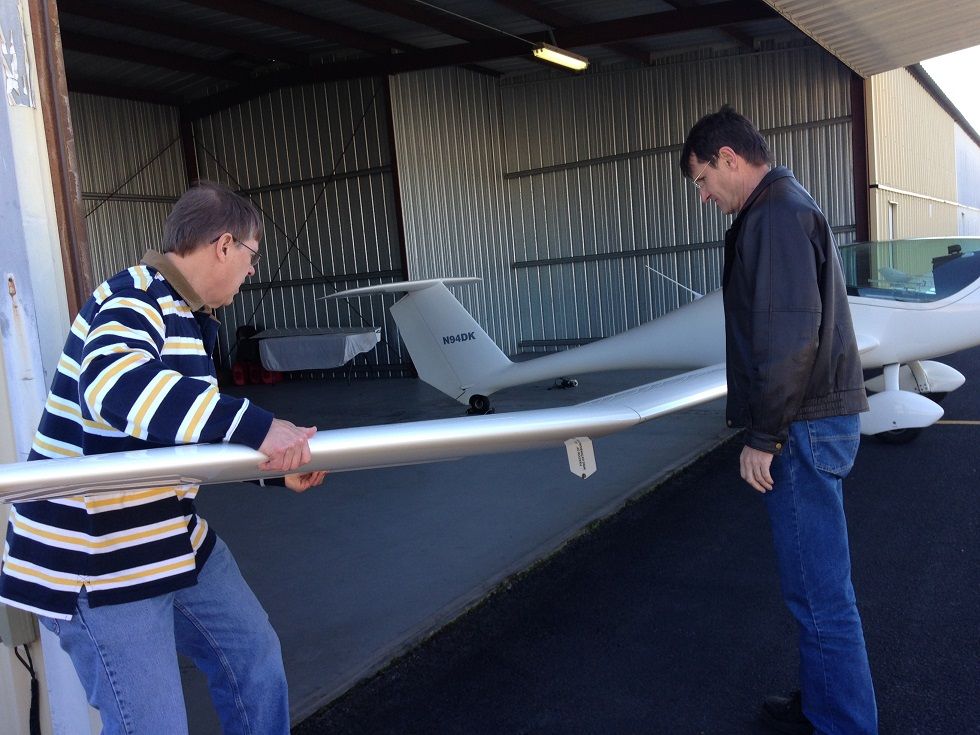 Мы прекрасно провели время у наших друзей и на следующий день к обеду уже были в Колумбии. Мотопланер был интересный по дизайну. Примерно треть каждой консоли была отъемная и это давало два преимущества - его можно было хранить в стандартном ангаре и эксплуатировать и как самолет и как мотопланер. Отъемные части весили всего около 5 кг каждая (планер углепластиковый) и один человек менял конфигурацию за 15 минут (сам пробовал) при этом элероны продолжаются и на отъемной части. Но когда мы залезли в кабину мы разчаровались. Видимость была никакая и хозяин подтвердил, что на посадке на выравнивании он полосу уже не видит и при рулении тоже, это при его росте в 180 см. Нине же и в сторону видно было не очень. Кроме того для нее были еще две проблемы - она не могла достать ни до педалей ни до панели приборов. Педали и сиденья были нерегулируемыми. Полетать, к сожалению, из-за сильного боковика с порывами, как и обещали, до 25 миль не удалось. В ходе беседы выяснились еще кое-какие настораживающие ньюансы. В общем, поездка была плодотворной и интересной, хоть и с отрицательным результатом. Домой мы добрались только к 6-ти часам вечера.