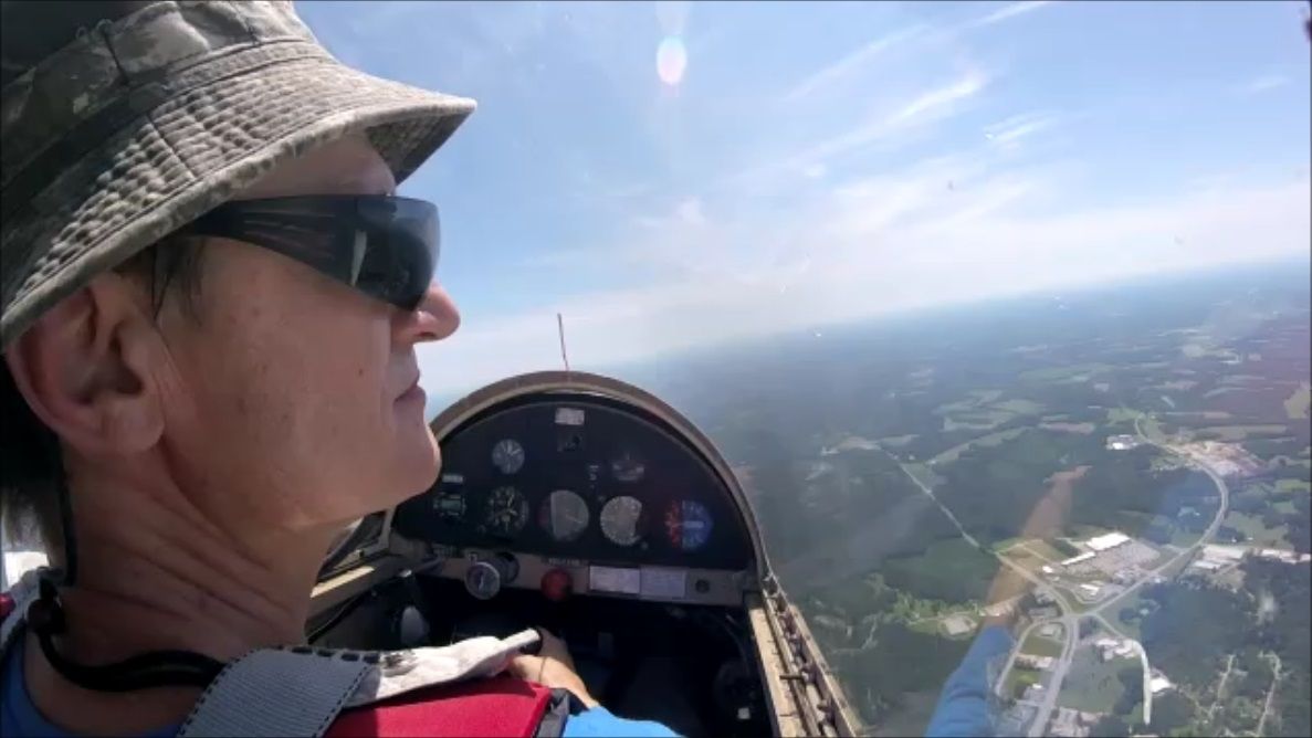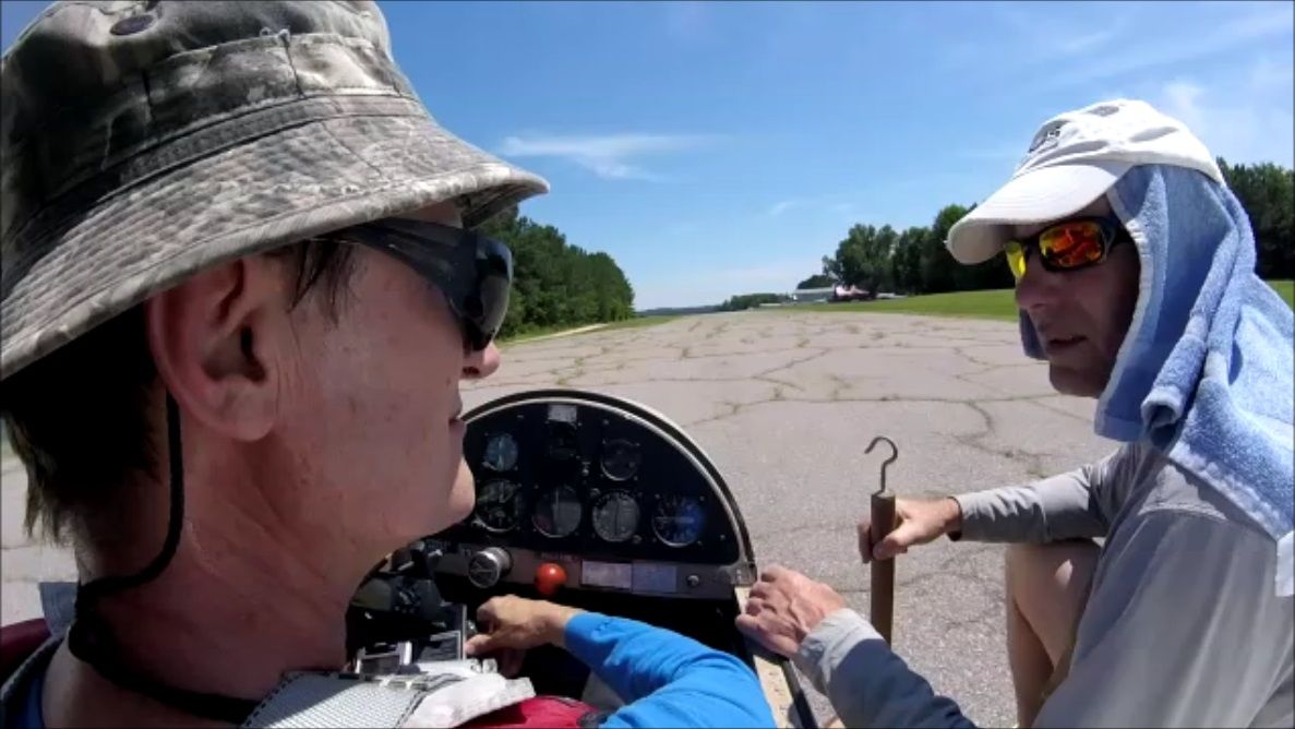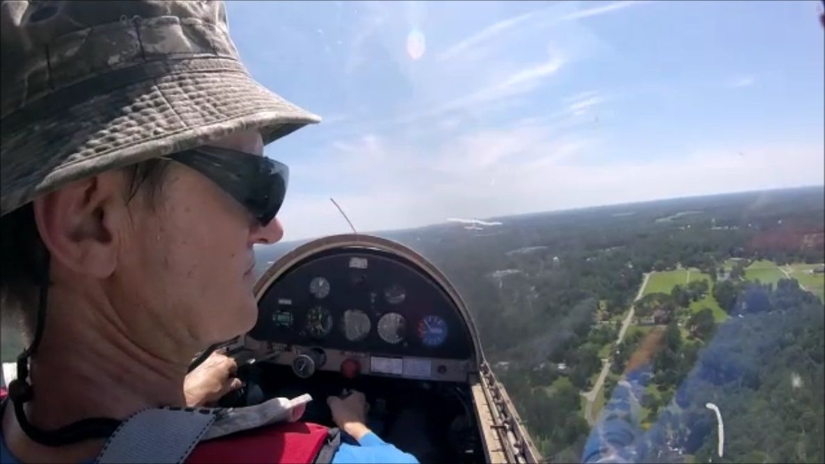 Местный корифей делится со мной секретной информацией о "домашних" термиках в районе аэропорта. Он летает на более поздней модели планера от "Швайцера" SGS 1-26 у которого размах поменьше и, соответственно, летные характеристики похуже и поэтому он знает тут все нычки, где можно хоть за что-нибудь зацепиться в воздухе.