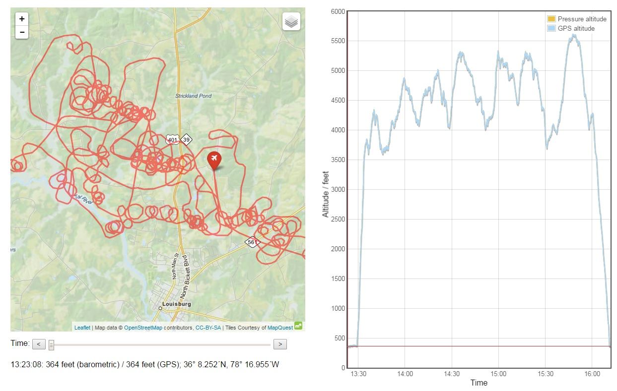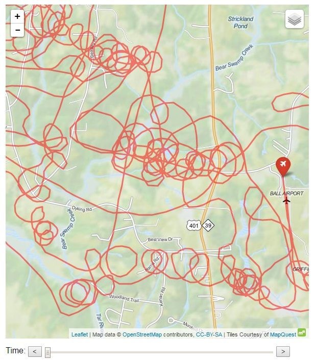 Скачал треки своих планерных полетов. Вот так выглядит полет на планере в районе аэродрома в хорошую погоду. На второй фотке добавил увеличение. Прям кружева я в небе плету 🙂.
