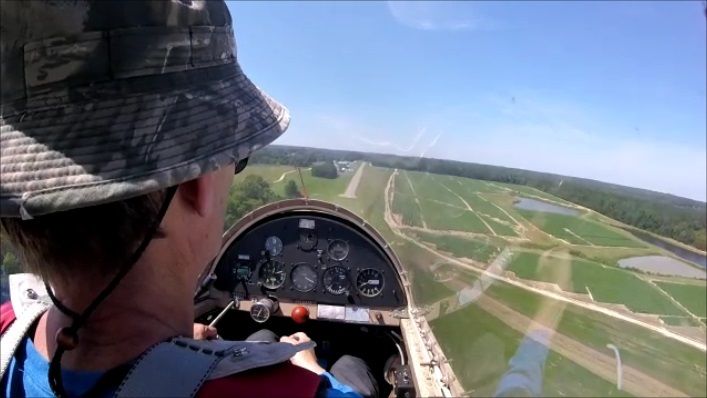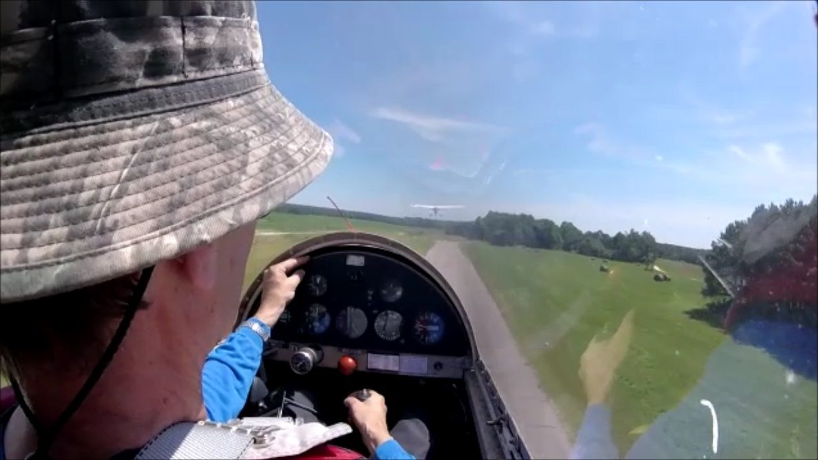 Взлетел я без проблем и отцепился на высоте 3000 футов. В планерном плане погода была хилая и мне удалось продержаться в воздухе только полчаса. Перед взлетом я наспех приладил в кабине видеокамеру и вот немного фоток с нее и одна с телефона. К следующему разу надо будет переделать крепеж, чтобы пилота было в кадре поменьше. Поскольку термиков было немного, то в термике всегда была пара планеров рядом. Я пытался их снять телефоном, но ничего путного не получилось.