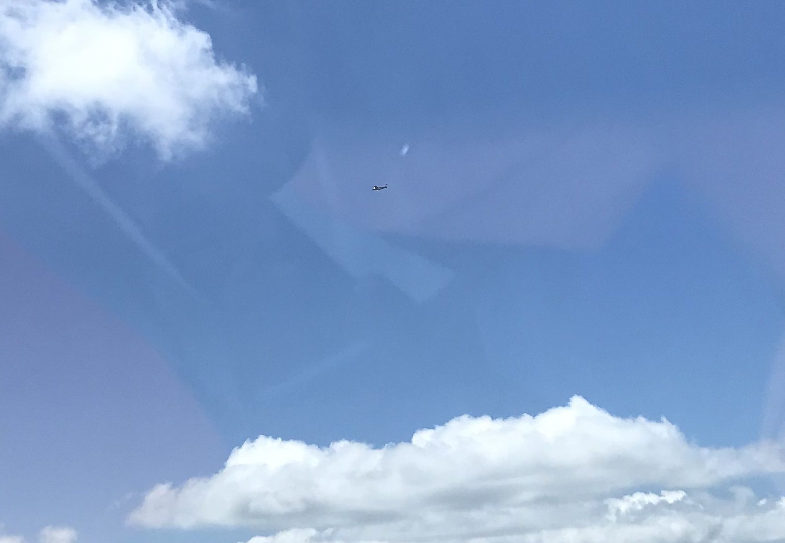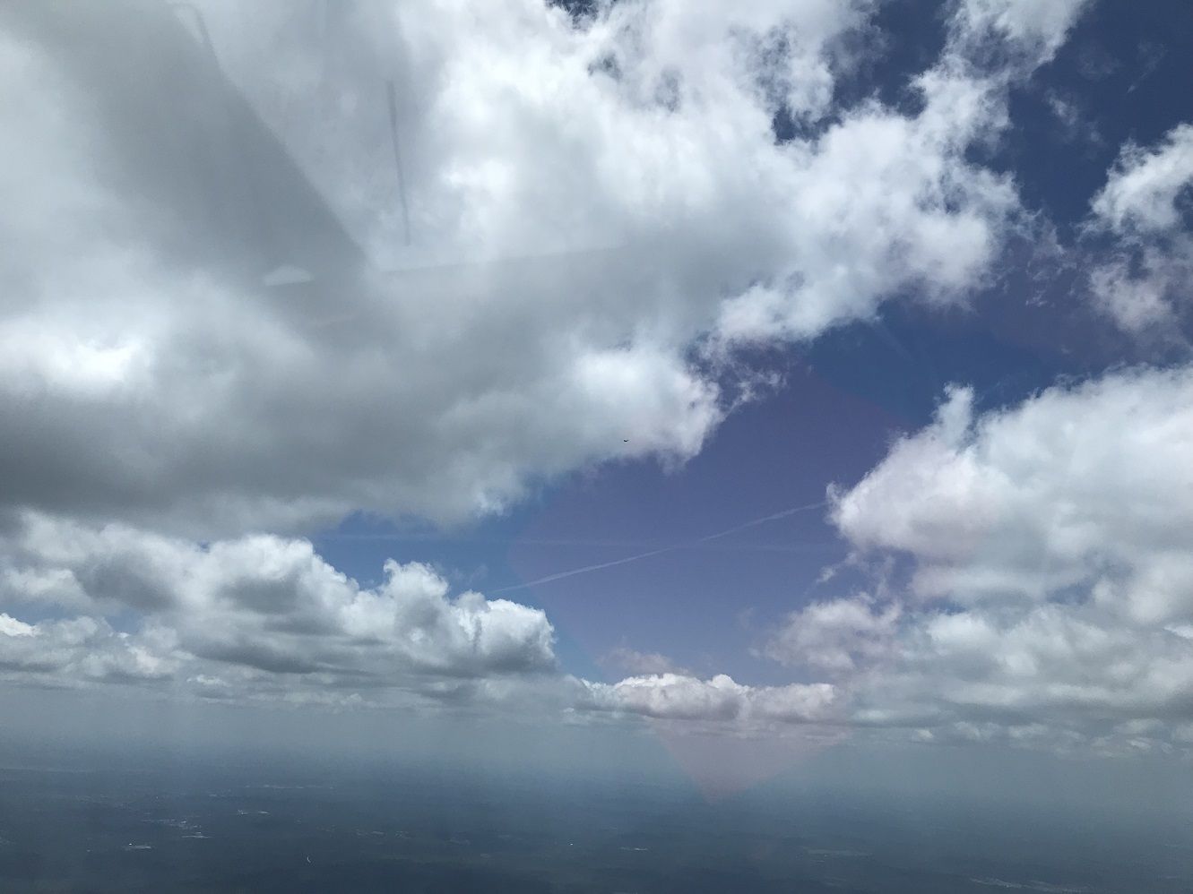 Планер! Это стоящий в потоке планер нарезает спирали и солнце отражается от крыла в виде ярких бликов. У него нет транспондера и поэтому я не вижу его на экране. Вот я уже его вижу слева от нас и он идет встречным курсом и мы быстро сближаемся, он ниже нас на 500-700 футов. Я отворачиваю немного вправо, в надеже, что он сделает тоже самое. Но он поворачивает в нашу сторону и снова встает в поток. Прошу Нину его сфотографировать и отворачиваю еще больше вправо, по правилам он имеет преимущество.