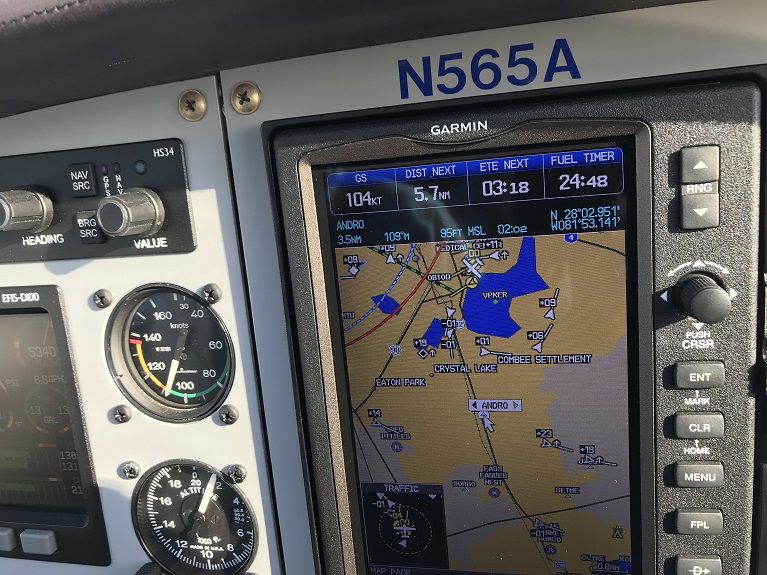 Мы летим со скоростью 100 узлов на высоте 4,5 тысячи футов против ветра в 15-17 узлов, выше он еще сильнее. Летим на автопилоте и я по привычке сверяюсь с картой. Часа через полтора я обнаруживаю, что по карте у меня линия нашего полета идет с одной стороны аэропорта, а по GPSу и по факту мы его облетаем с другой стороны.