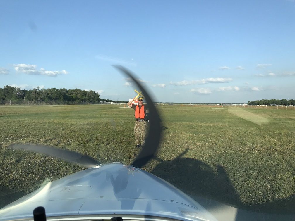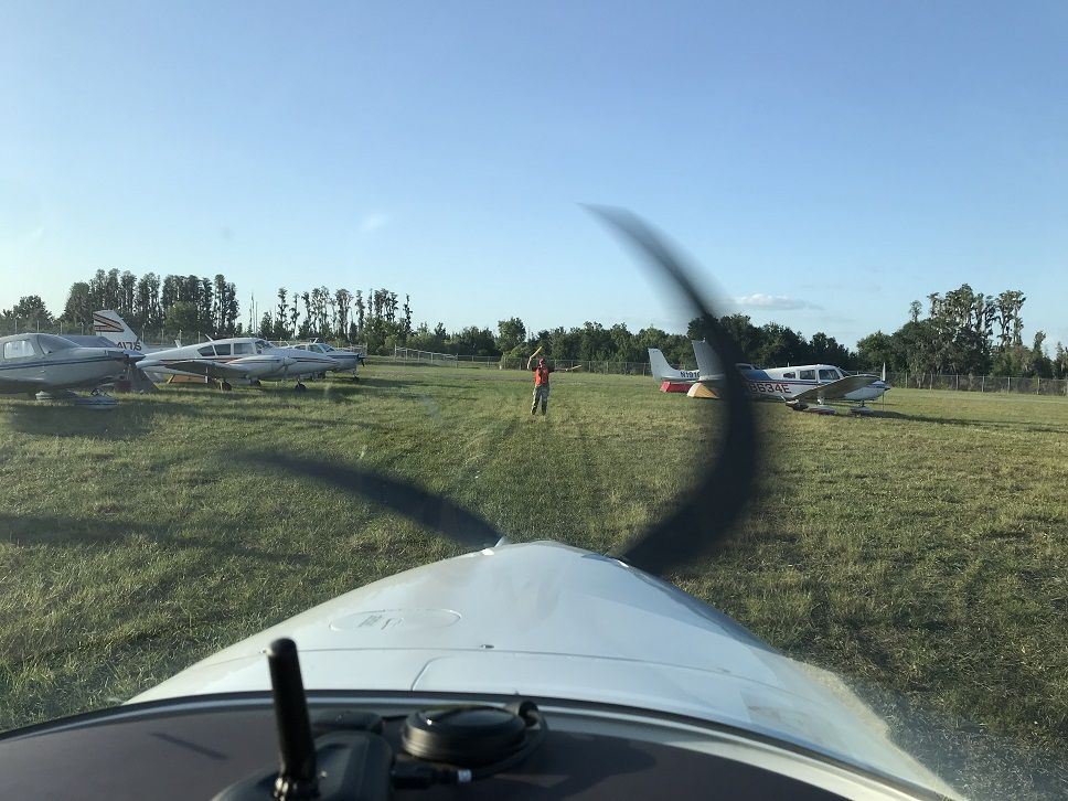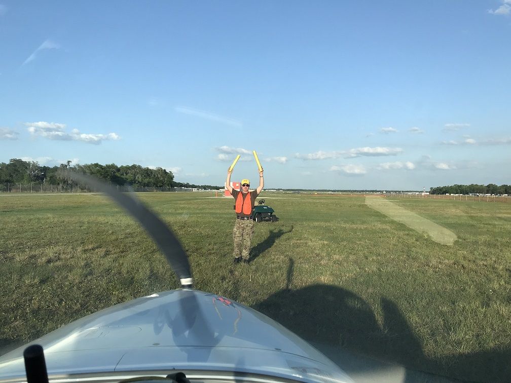На половине пути мы сели дозаправиться и после заправки за КВСа был уже я. Поскольку примерно с двенадцати часов и до пяти на Sun and Fun проходят различные воздушные шоу аэропорт в это время закрыт и мы решили сесть не долетая до него 18 миль, там подождать окончания шоу и потом уже лететь до места.