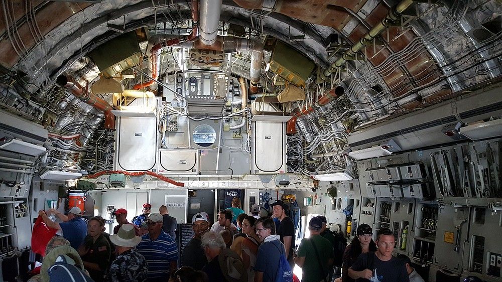 А потом мы увидели длинную очередь и я тут же встал в нее, заподозрив, что это очередь на посещение кабины. Так оно и оказалось. Но когда перед нами оставалось человек десять, то из-за большого наплыва посетителей было принято решение всех попросить удалиться и самолет закрыть. Послушные американцы грустно застонав направились к выходу, в том числе и четверо впереди нас. Мы упорно продолжали стоять. Тогда командир разрешил остаться самым стойким и четверка быстро вернулсь обратно, но теперь они оказались за нами. Самолет опустошили и закрыли рампу и аварийный люк.