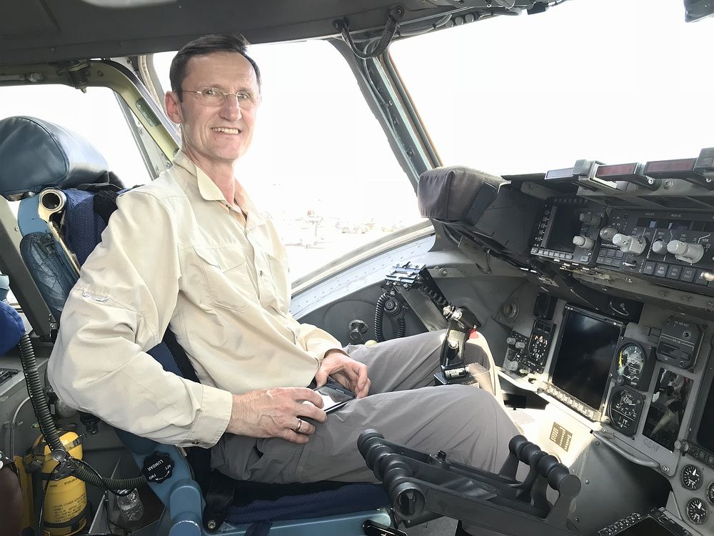Экипаж у него всего три человека - два пилота и мастер по загрузке.