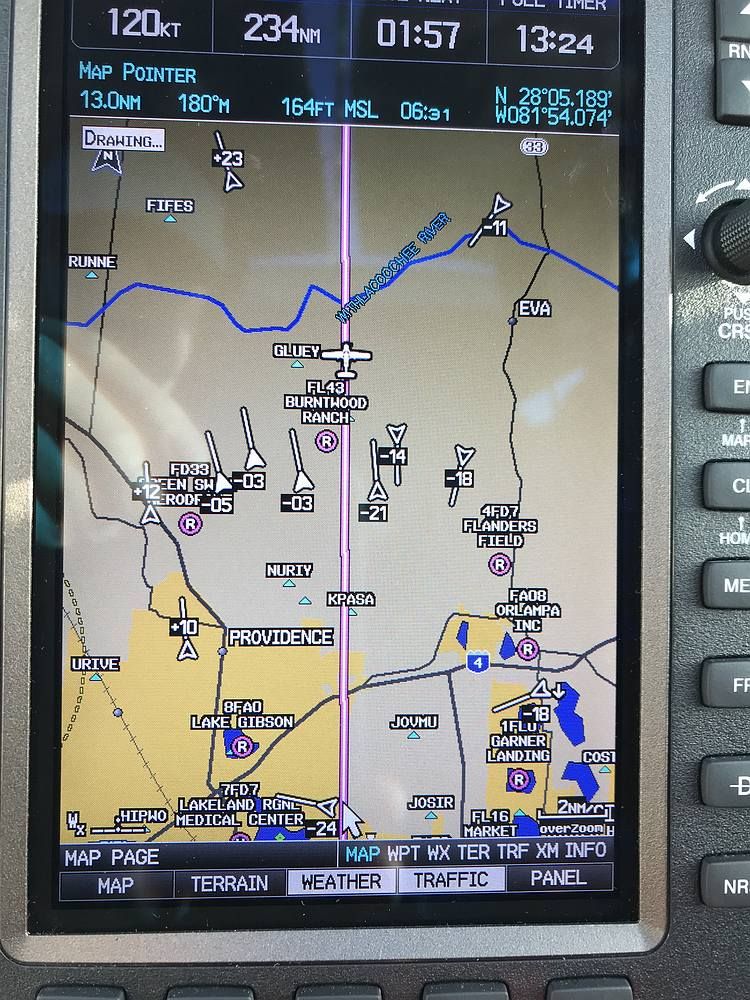 Погода была хорошая и справа сзади нам дул хороший ветер в 17 узлов и путевая скорость у нас была заметно больше воздушной.