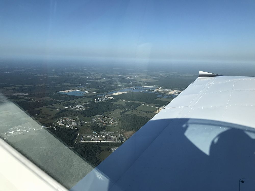 Мы связались с диспетчерами и попросили сопровождение. Выставив полученный код на транспондере мы стали глазеть по сторонам. Под нами проплывали типичные местные пейзажи - леса, города, тюремные комплексы. Сразу четыре тюрьмы в одном месте это круто!