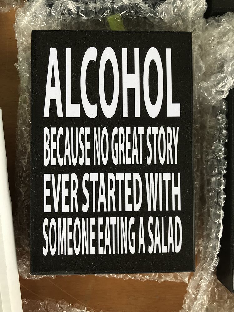 Смысл второй фотки такой: Только алкоголь, потому, что ни одна замечательная история не исходит от того, кто ест салат.