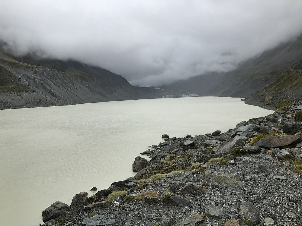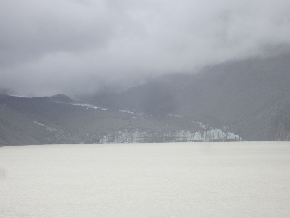 Выходим к озеру с ледником. Ледники тут быстро тают. Ледники, которые я показывал раньше, с 2010 года отступили на 2-3 км. Этот уже покрыт толстым слоем камней и гальки и озера здесь раньше не было – тут был ледник. Потепление в действии.