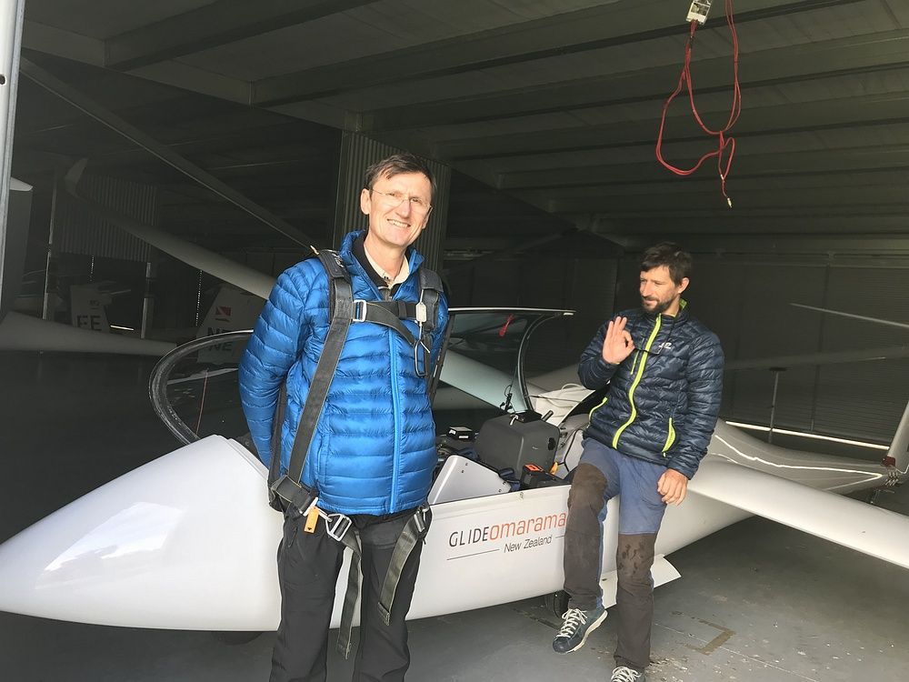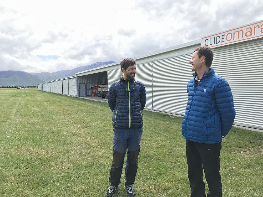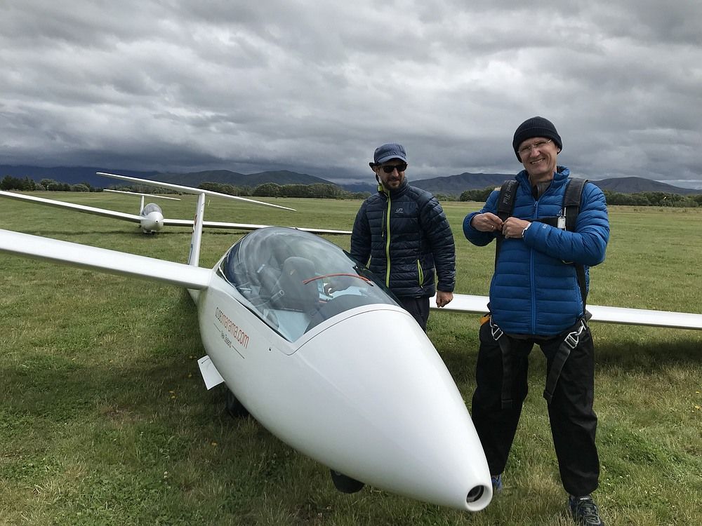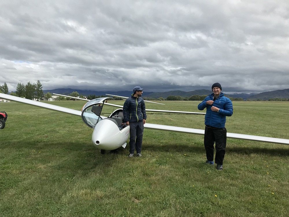 Гавин подводит к нам двух парней и знакомит нас. Моего инструктора зовут Милан и он из Венгрии, сюда приезжает на заработки когда в Европе зима. Инструктора моей супруги зовут Норберт и он из Румынии, он тоже приезжает сюда зимой подработать и полетать. В ходе разговороа я обмолвился, что немного занимался радиоуправляемыми планерами и он с интересом спросил какими именно. Выяснилось, что раньше он серьезно занимался радиоуправляемыми моделями планеров класса F3J. Однажды кто-то спросил его, а почему бы ему не попробовать настоящие планера, он попробовал. Теперь он чемпион Румынии, в мировом списке спотртсменов-планеристов у него рейтинг 39, а в прошедшем мировом чемпионате он пришел шестым. Во как! А ведь совсем молодой парень (на фотке он слева). Естественно они оба хорошо говорят по английски.