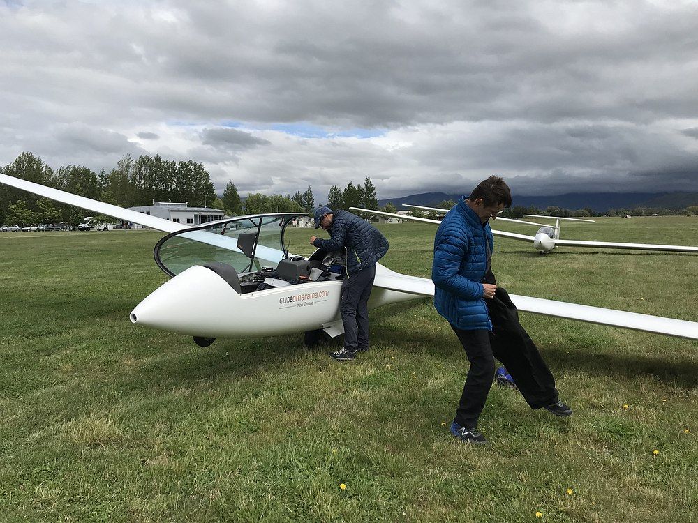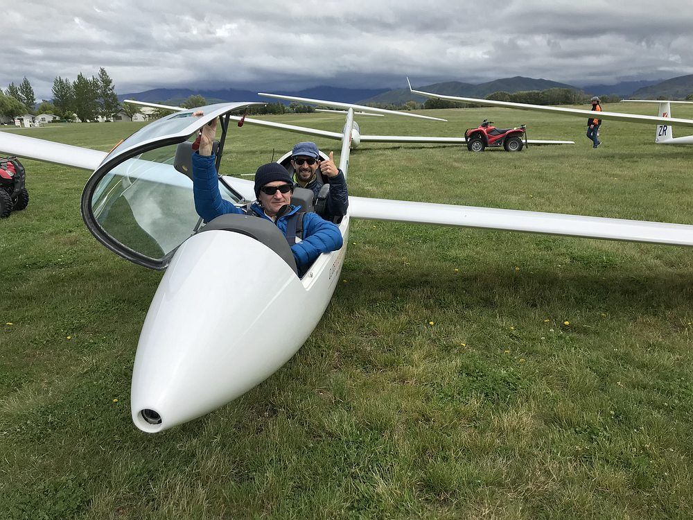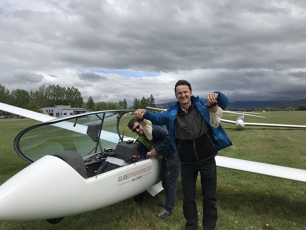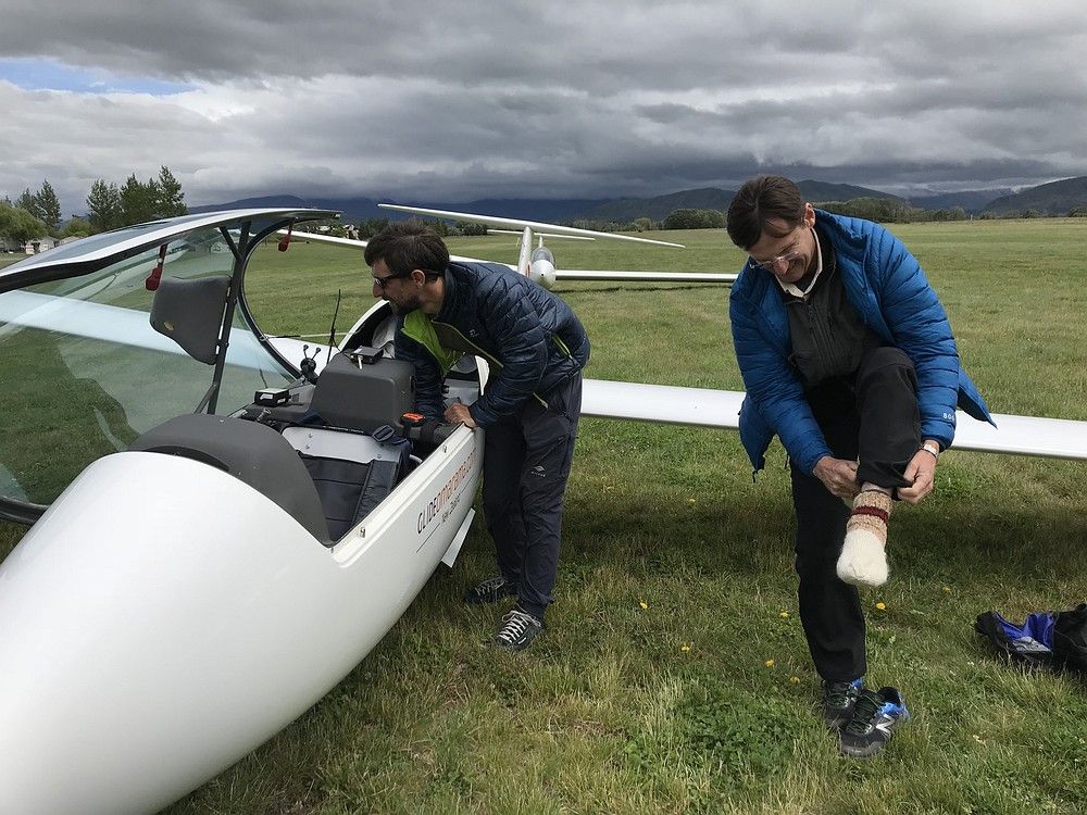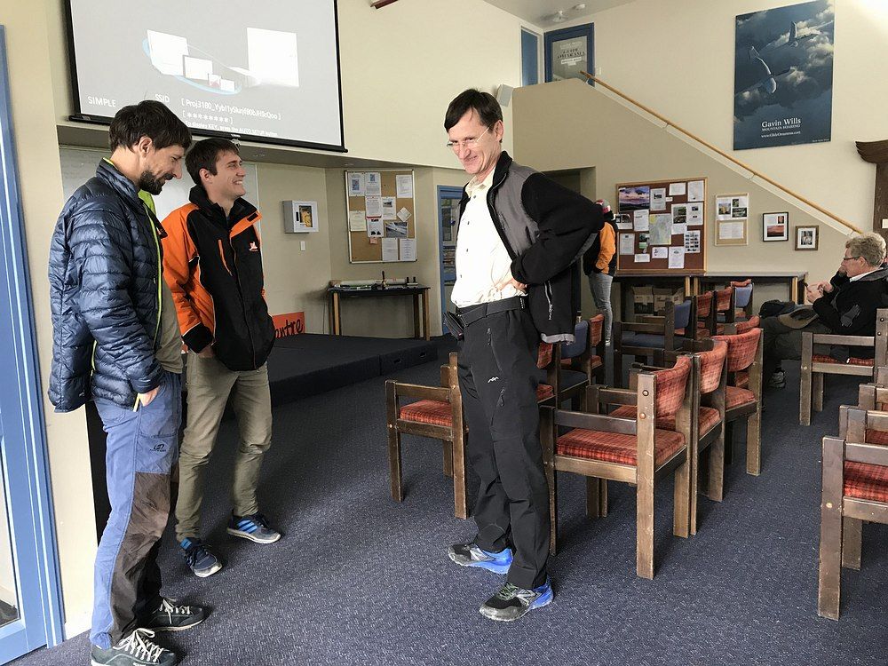 Гавин подводит к нам двух парней и знакомит нас. Моего инструктора зовут Милан и он из Венгрии, сюда приезжает на заработки когда в Европе зима. Инструктора моей супруги зовут Норберт и он из Румынии, он тоже приезжает сюда зимой подработать и полетать. В ходе разговороа я обмолвился, что немного занимался радиоуправляемыми планерами и он с интересом спросил какими именно. Выяснилось, что раньше он серьезно занимался радиоуправляемыми моделями планеров класса F3J. Однажды кто-то спросил его, а почему бы ему не попробовать настоящие планера, он попробовал. Теперь он чемпион Румынии, в мировом списке спотртсменов-планеристов у него рейтинг 39, а в прошедшем мировом чемпионате он пришел шестым. Во как! А ведь совсем молодой парень (на фотке он слева). Естественно они оба хорошо говорят по английски.