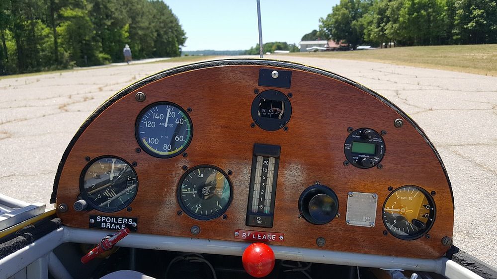 Первым ушел Бланик, я был вторым на очереди. Вот такая у него приборная панель, планер в очень хорошем состоянии несмотря на его возраст (он 1962 года выпуска).