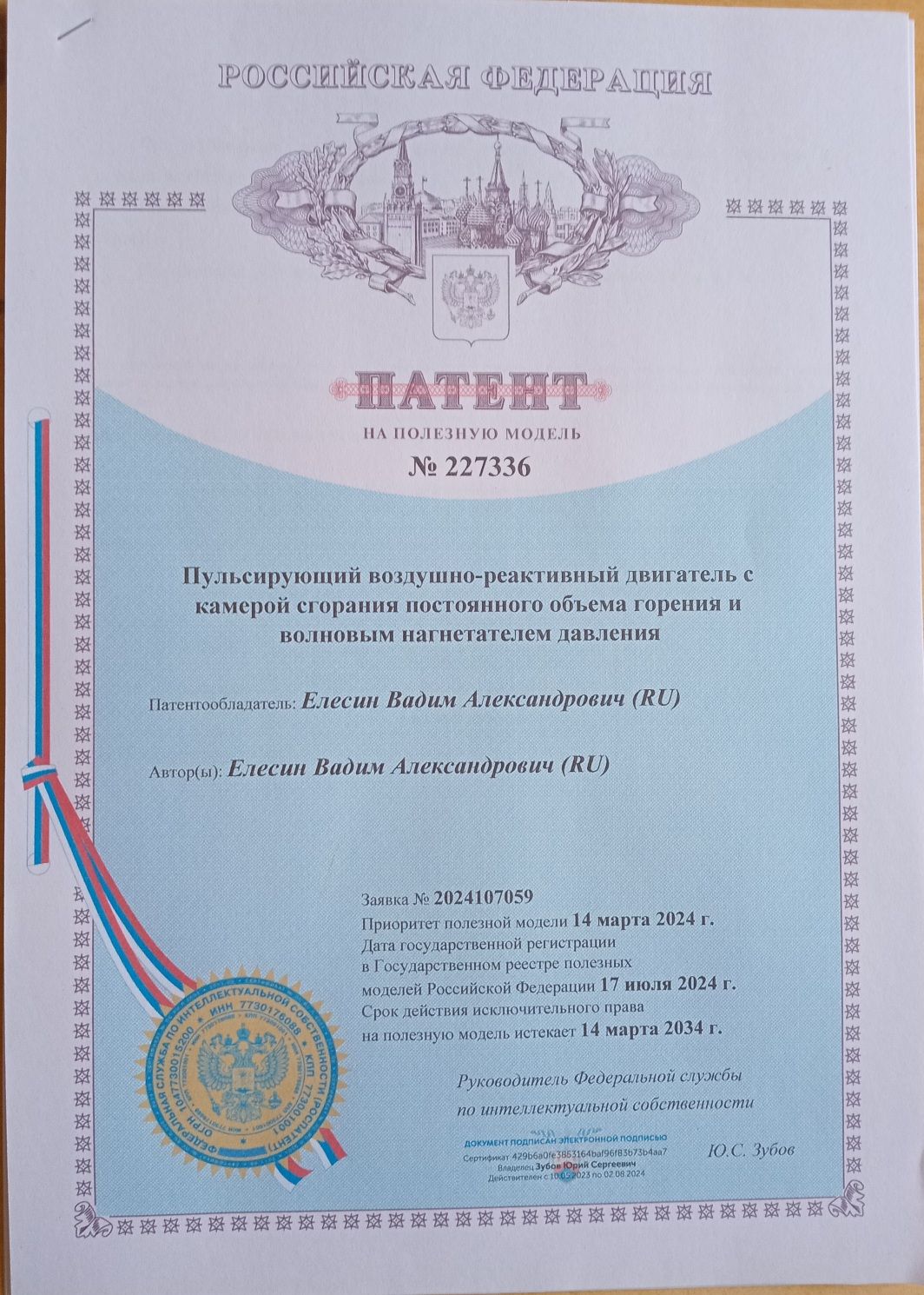 О каком изобретении идёт речь? Выложите хоть одну рабочую ссылку на секретный "патент на полезную модель №227336" Елесин Вадим Александрович