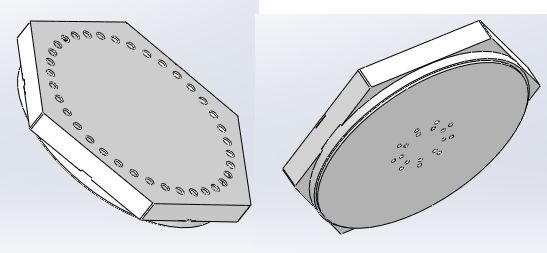 Прошу обратить внимание, что на верхней плоскости модульков - есть окружной ПЕРИФЕРИЙНЫЙ ряд  отверстий [ch216]5мм числом, например, 36 штук, а на нижней поверхности модулька - есть вдвое меньшее число отверстий [ch216]2,5мм.