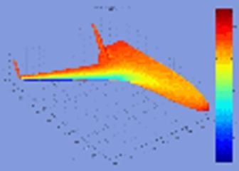 Красного цвета - повышенное давление:  снизу носа фюзеляжа, сверху задней кромки S-образного профиля...