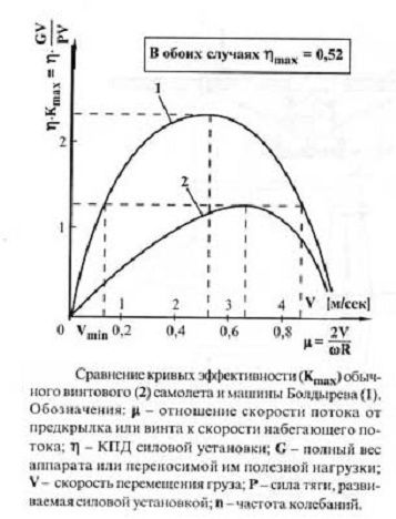 Что касается самолета Болдырева, то при равных КПД силовых установок - произведение (КПД * Кэф) у него примерно в 2 раза выше произведения (КПД * Кэф) винтового самолета.
