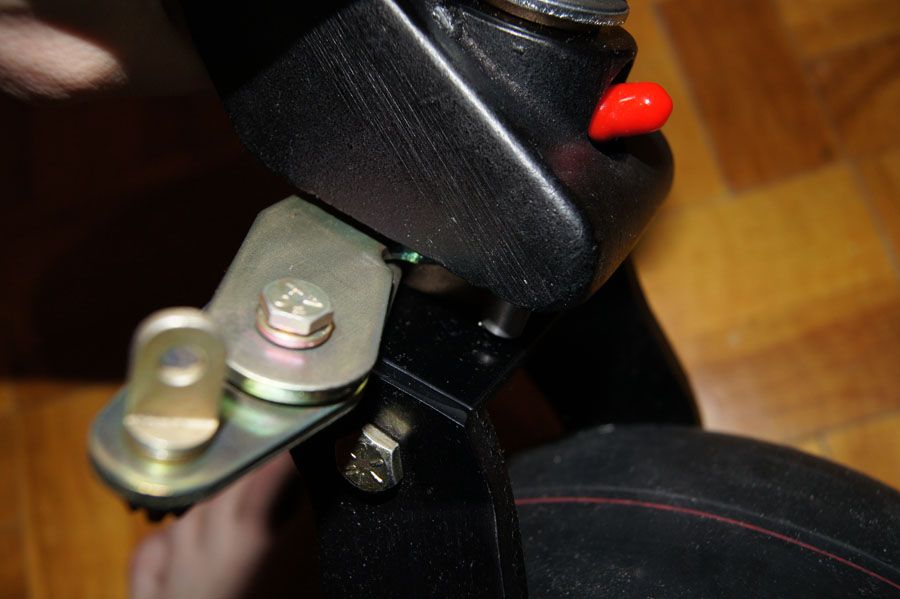 А что за проблеме:если у хвостового колеса полая ось,то это водило просто имеет форму кочерги,вставляемой внутрь оси;если сплошная - надо хвататься за вилку.что,конечно,сложнее,но вполне реализуемо.