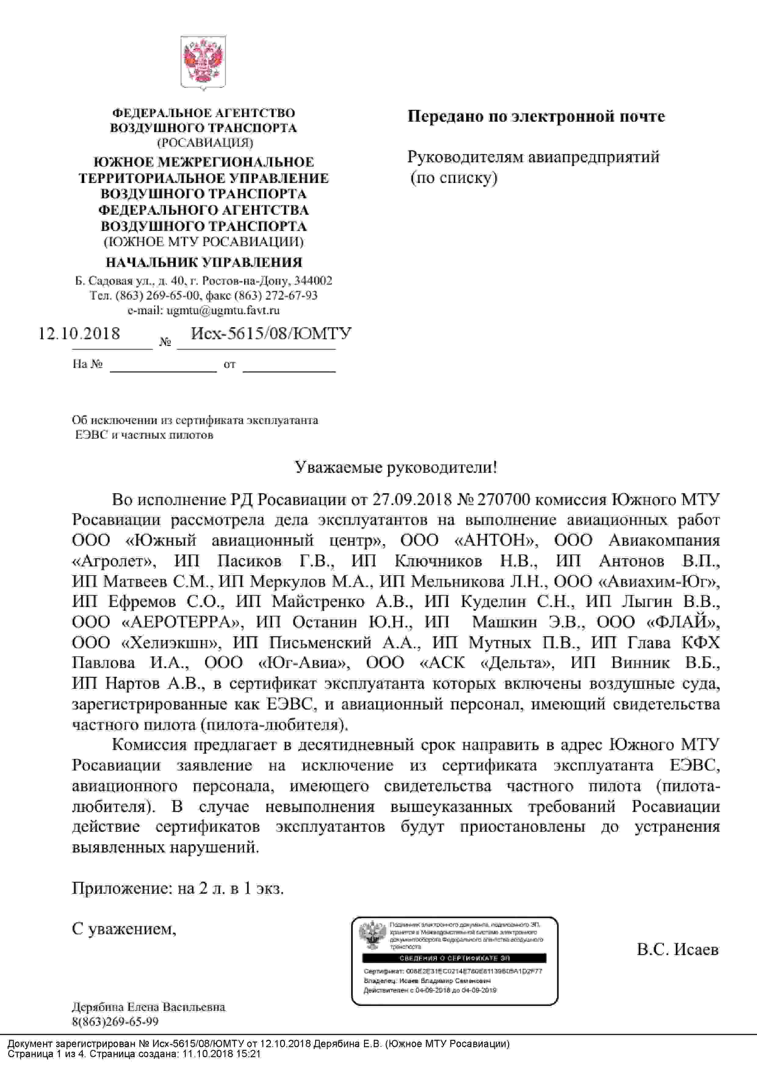 Не пойму в чём паника. Ну Росавиация послала внутреннее междусобойное распоряжение своим МТУ не вписывать авиаработы на ЕЭВС в свидетельстве эксплуатанта. Правильно делают по закону. Но ни слова о каких-то запретах. В чем проблема? Как летали, так и дальше полетим. Регистрацию ЕЭВС никто не отменил, СЛГ осталось. А что еще надо для полетов? А что не запрещено, то можно.