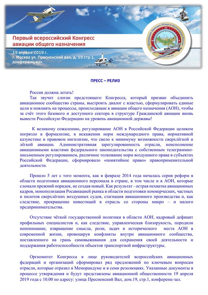 Оно было направлено на выработку единых и согласованных целей, действий и мероприятий по принципиальному изменению ситуации в области авиации общего назначения, которая из-за отсутствия профессионального государственного регулирования и четкой вертикали управления достигла своего дна!