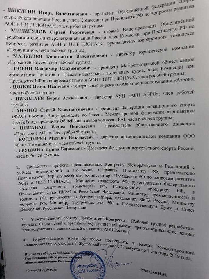 Напомню, что там речь идёт о "соответствующих концептуальных положениях развития легкой авиации, включая целевые показатели, сформированные рабочей группой Комиссии по АОН и ГЛОНАСС.