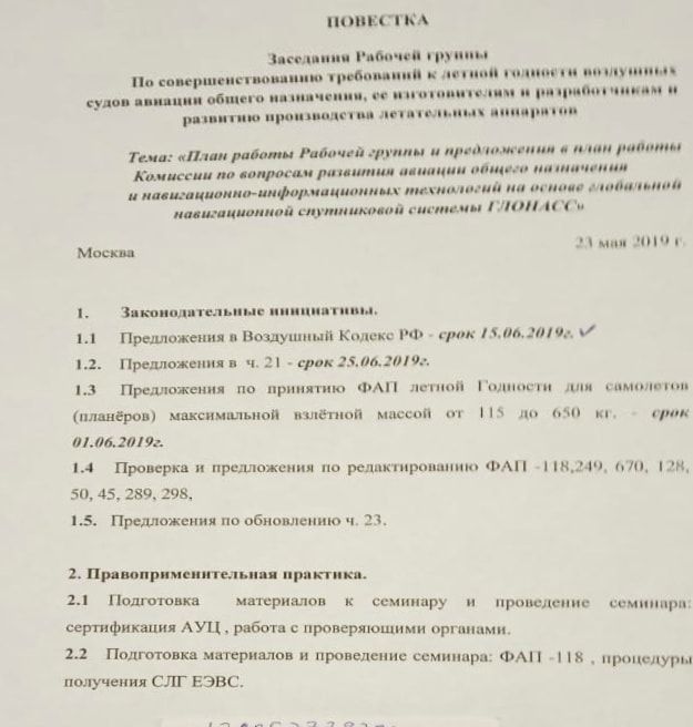 2. Академия министерства юстиции готовит предложения о создании "Лаборатории проблем регуляторной политики в области легкой, сверхлегкой авиации" с тем, чтобы эксперты могли легитимно взаимодействовать с ФОИВ.