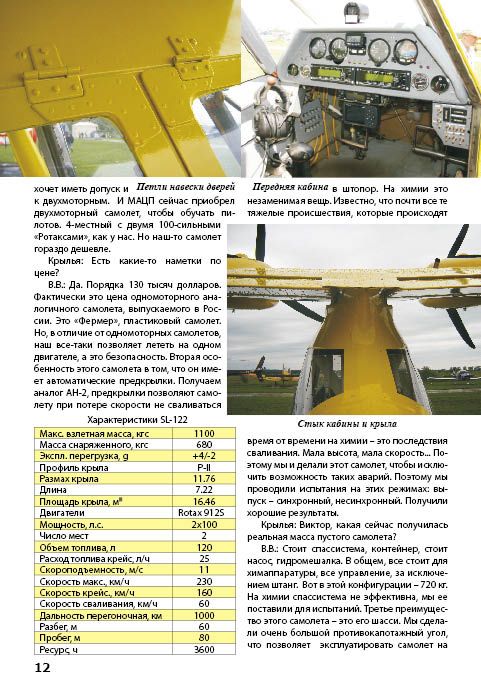 ТАКОЙ ЗНАКОМЫЙ М-12... 7 штук выпущено этого самолета. Хотя он, в общем-то, ровесник «Бекаса». Неудача, или, может, мы просто не умеем находить достойные ниши применения и раскручивать машину на рынке? Якубовичу машина очень понравилась. Присматриваются к самолету и за рубежом. У машины интересное сочетание взлетно-посадочных и крейсерских характеристик – и это при далеко не самых мощных двигателях.