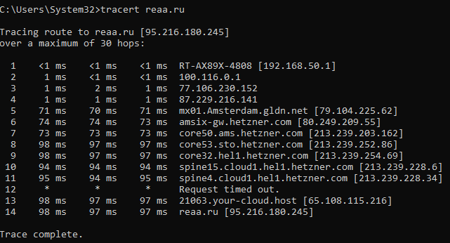 2 traceroute/tracepath или какая улилита есть в вашей ос reaa.ru