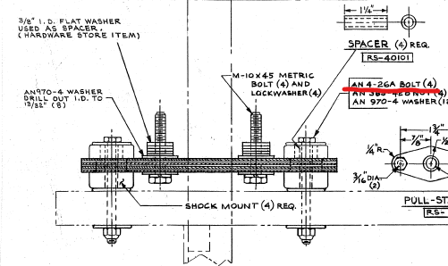 На чертеже показано что болт вставляется во втулку (spacer) 1 с четвертью дюйма длиной.
