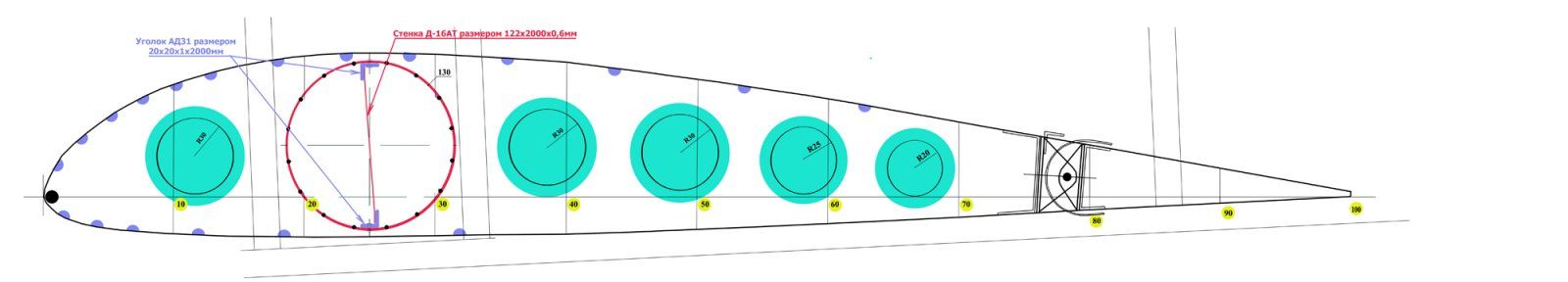Во внутрь трубчатого лонжерона консолей, вставлю алюминиевый уголок из АД31 20х20х1х2000мм (тонкий уголок 1мм применю для более плотного прижатия к округлой стенке трубчатого лонжерона) и стенку из листа Д-16АТ. Порядок действий (технологическую карту) уже продумал:Запенить трубу лонжерон пеной, а вырезы обмотать стеклотканью на эпоксидке.