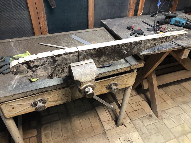 Вырезы в формблоке под фестоны в вершине обязательно должны иметь радиус .Форм блоки сделаны из б/у ламинированной фанеры толщиной 20 мм. Попробовал вырезать электролобзиком, но он рвет край реза фанеры. Взял УШМ с тонким диском по металлу, и в несколько проходов обрезал шаблон нервюры по периметру. Рез фанеры получился ровный , без сколов. Недостаток обрезания фанеры "болгаркой" - в помещении некомфортно резать, т.к. выделяется едкий дым (резал на улице). Затем торцы шаблонов нервюры зачистил ленточной шлифовальной машинкой. Фото форм-блоков в процессе изготовления.