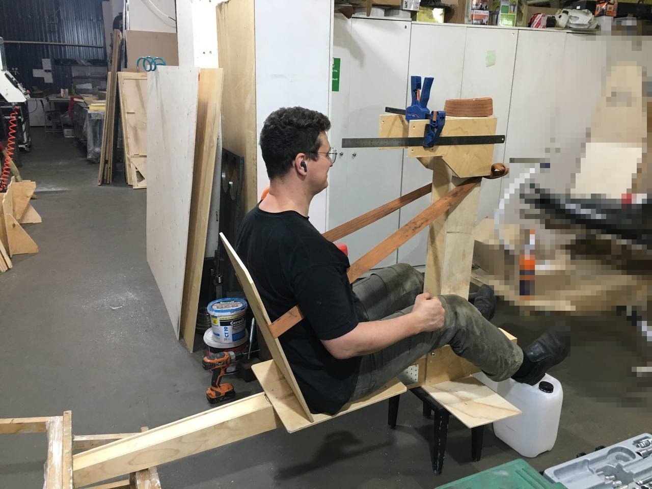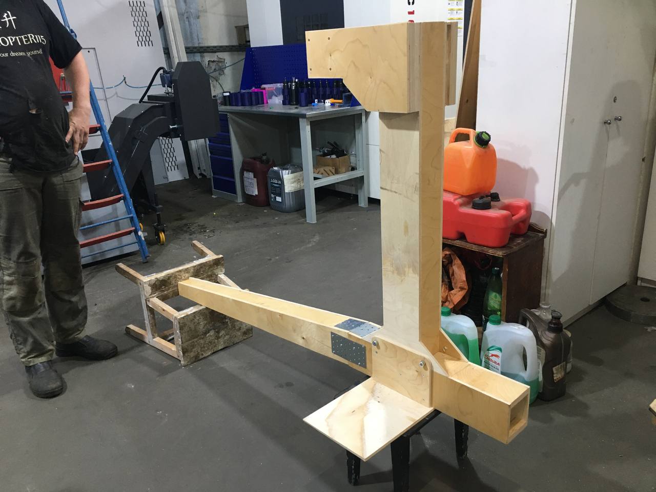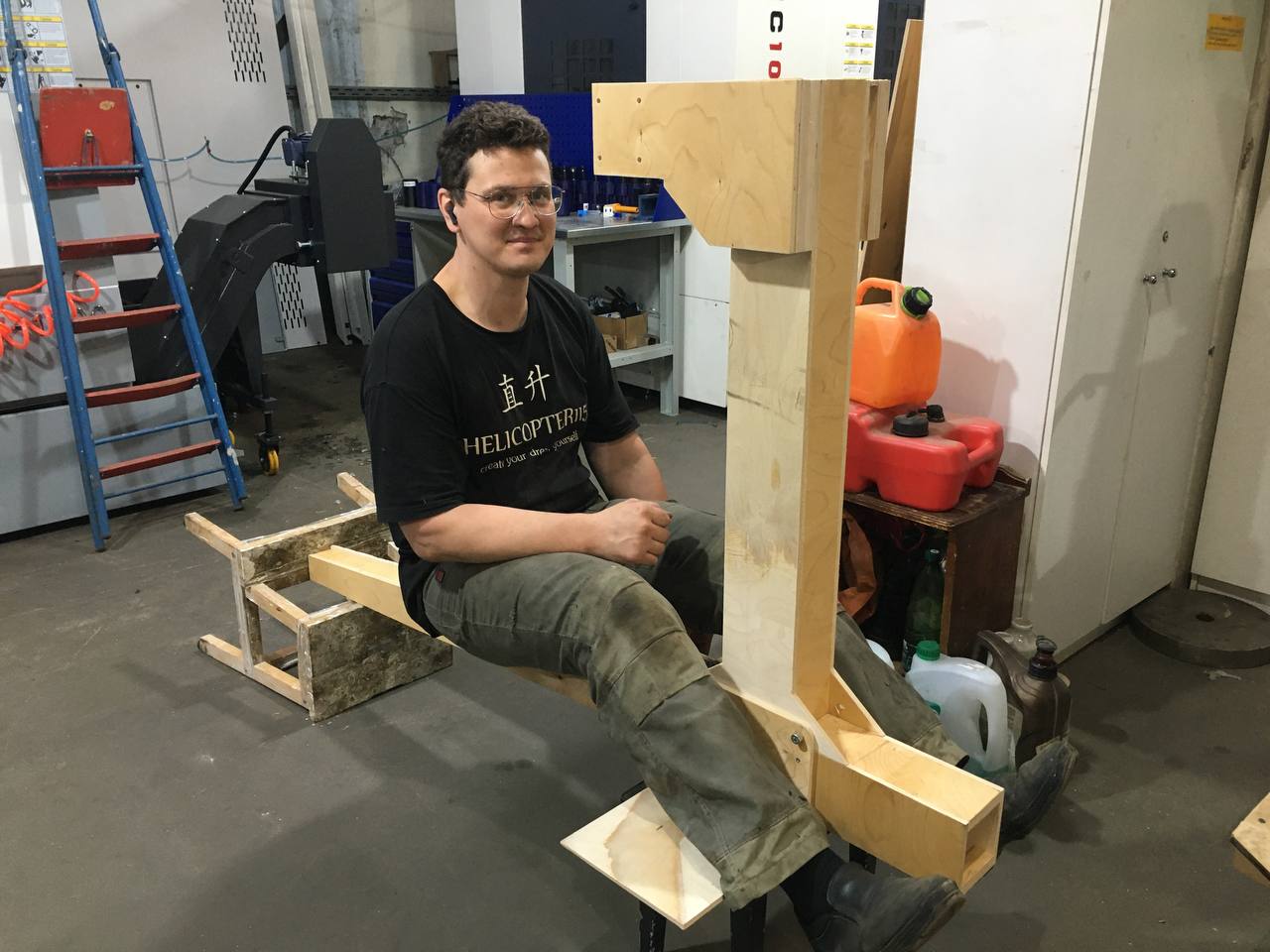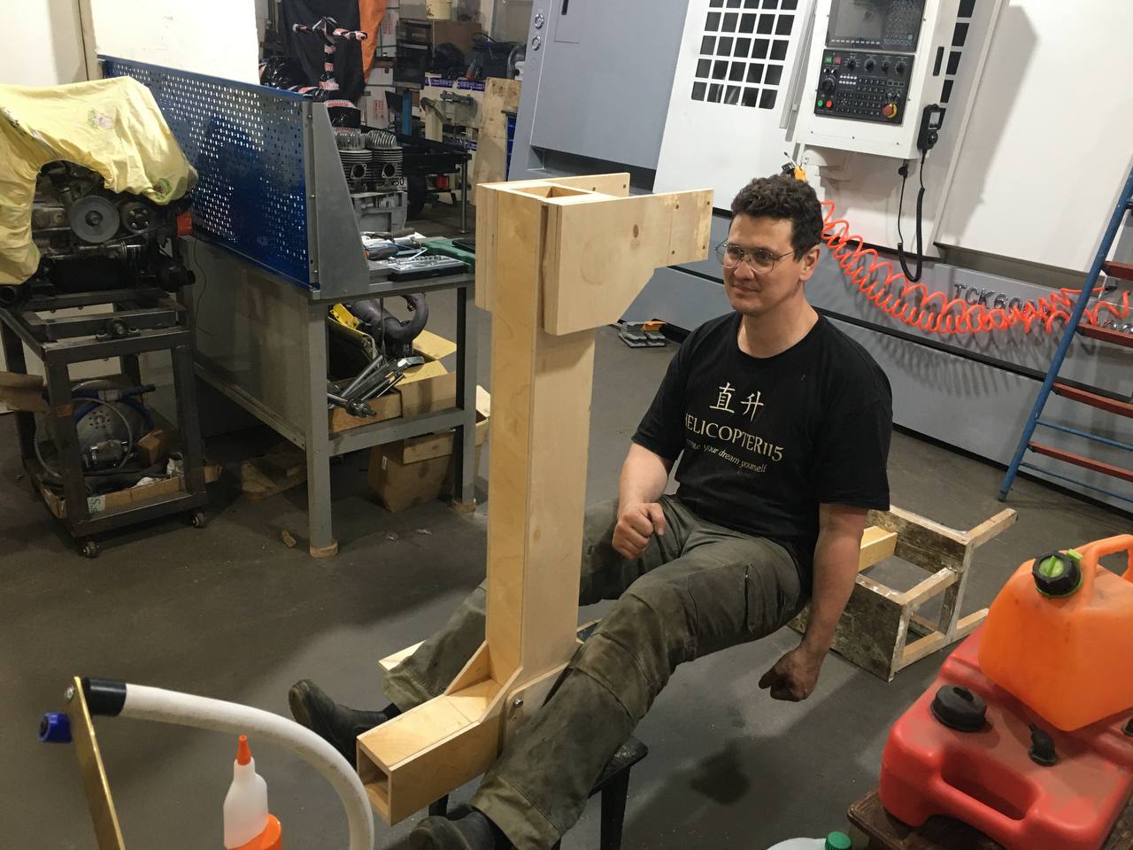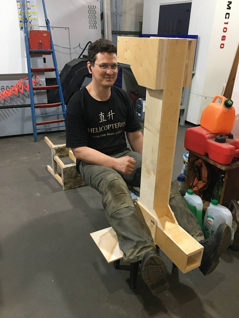 Фото очень кстати. У вас шасси колесное, т.е. предполагается возможное движение вперед? Даже, возможно, взлёт по-самолётному. При любом препятствии движению, даже при резком торможении, например при посадке на авторотации с пробежкой, вы лбом достанете корпус редуктора до которого всего 25 см. А если этот верхний редуктор развернуть на 180 град. Посадить спиной пилота к пилону, колеса и хвост поменять местами? По-моему ничего там конструктивно не изменится. Попробуйте, покомпануйте.Всем доброго здравия!