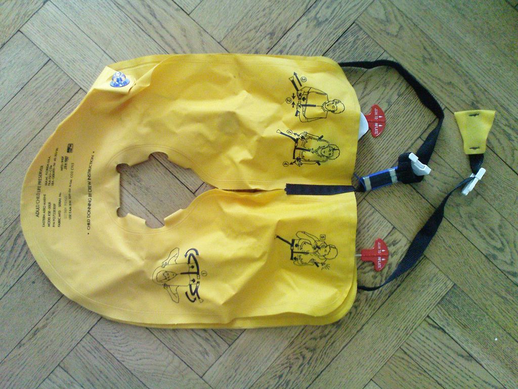 И в конце : Граждане , на этом спасжилете никогда не дёргайте СРАЗУ две красные ручки . ( Если ваш размер шеи больше детского ) И изучите инструкцию в картинках как его сдувать . На надетом и накачанном жилете картинок не видно!! Если пилотировать в нем , нада как то законтрить активаторы , не то эта адская весч случайно надувшись ,так даст штурвал от себя , что мало не покажется .