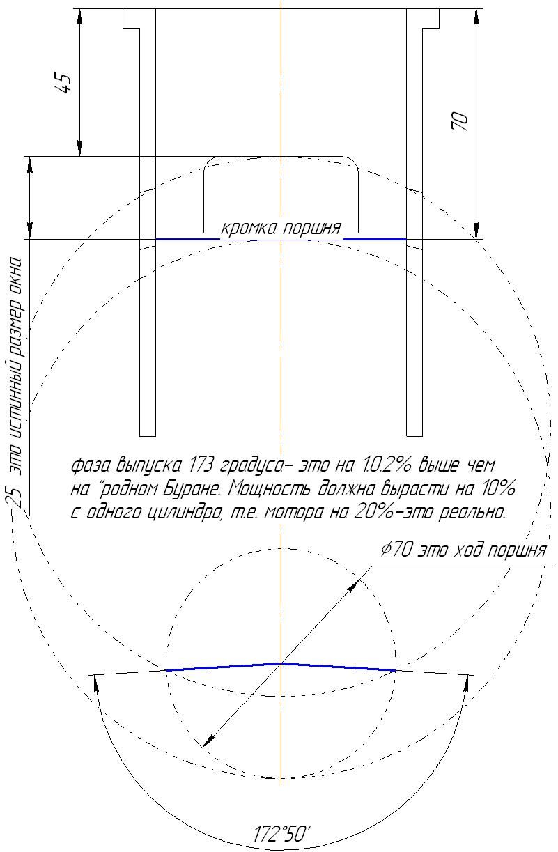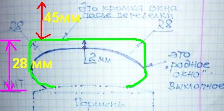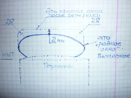 Чем дальше, тем интереснее 🙂 Значит фаза выпуска увеличится от стандартных 157 градусов в большую сторону.augen сказал(а):Поднять надо кромку выхлопного окна. верхняя красная стрелка. Сейчас нарисую на бумаге