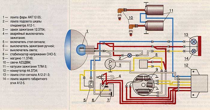 Теперь я колеблюсь между ТЛМ-2 и ТЛМ-3. Я не помню какие у меня были, пока черт не дернул поставить вместо них катушку от Оки. Вот посмотрите на эти схемы. Не отвлекайтесь на бортовую электросхему, нам интересно только то, что касается зажигания. Главное в ней магдино и коммутатор. Они и должны определять какие катушки и какие свечи должны быть. Вот на этих схемах магдино и коммутатор одинаковые. Но на одной ТЛМ-2 и свечи А17, а на другой - ТЛМ-3 и свечи А20 (у меня свечи А17) Какие будем ставить ребята? Роман, у вас какие?
