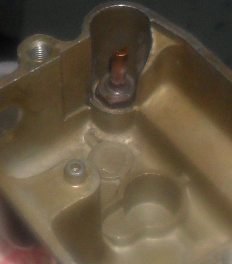 Это сливной штуцер, о котором я много писал. Вот вид изнутри. Регулируется вворачиванием и выворачиванием. В принципе я могу вообще выкинуть из карба поплавок с иглой. Весь избыток топлива, которая качается насосом и не съедается двигателем чрез этот штуцер будет возвращаться в бак.