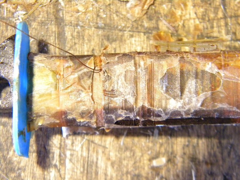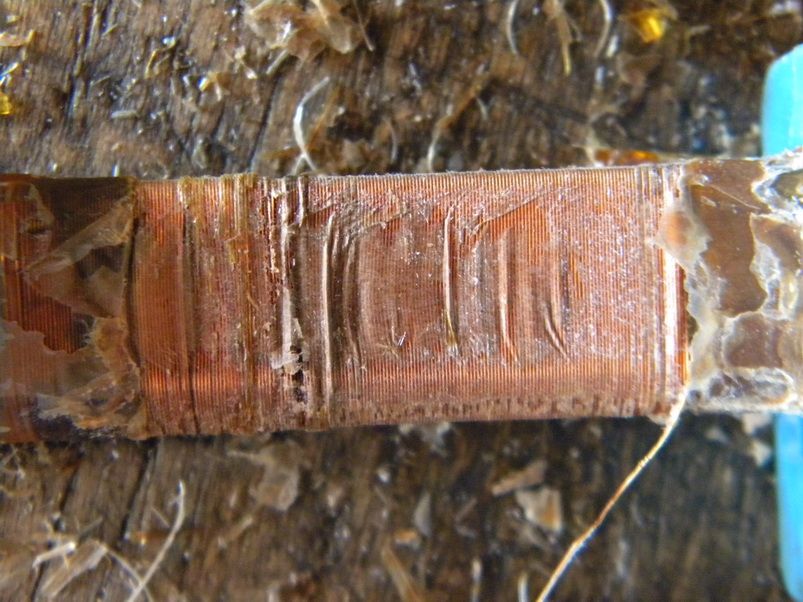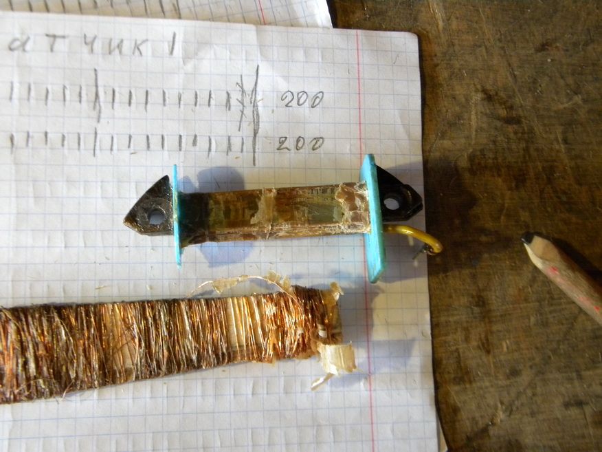 А вот и датчик. Здесь диаметр провода 0,2. Внешний вид обмотки хоть и слегка потемневший, но это от внешнего нагрева.