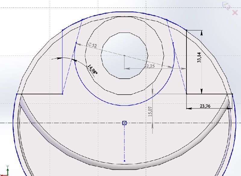немного иначе, т.е. завалить вертикальные пилы под углом ближе к шатуну по касательно к диаметру 52  , то мог бы получиться коэффициент в районе 0,5.Так сейчас пример