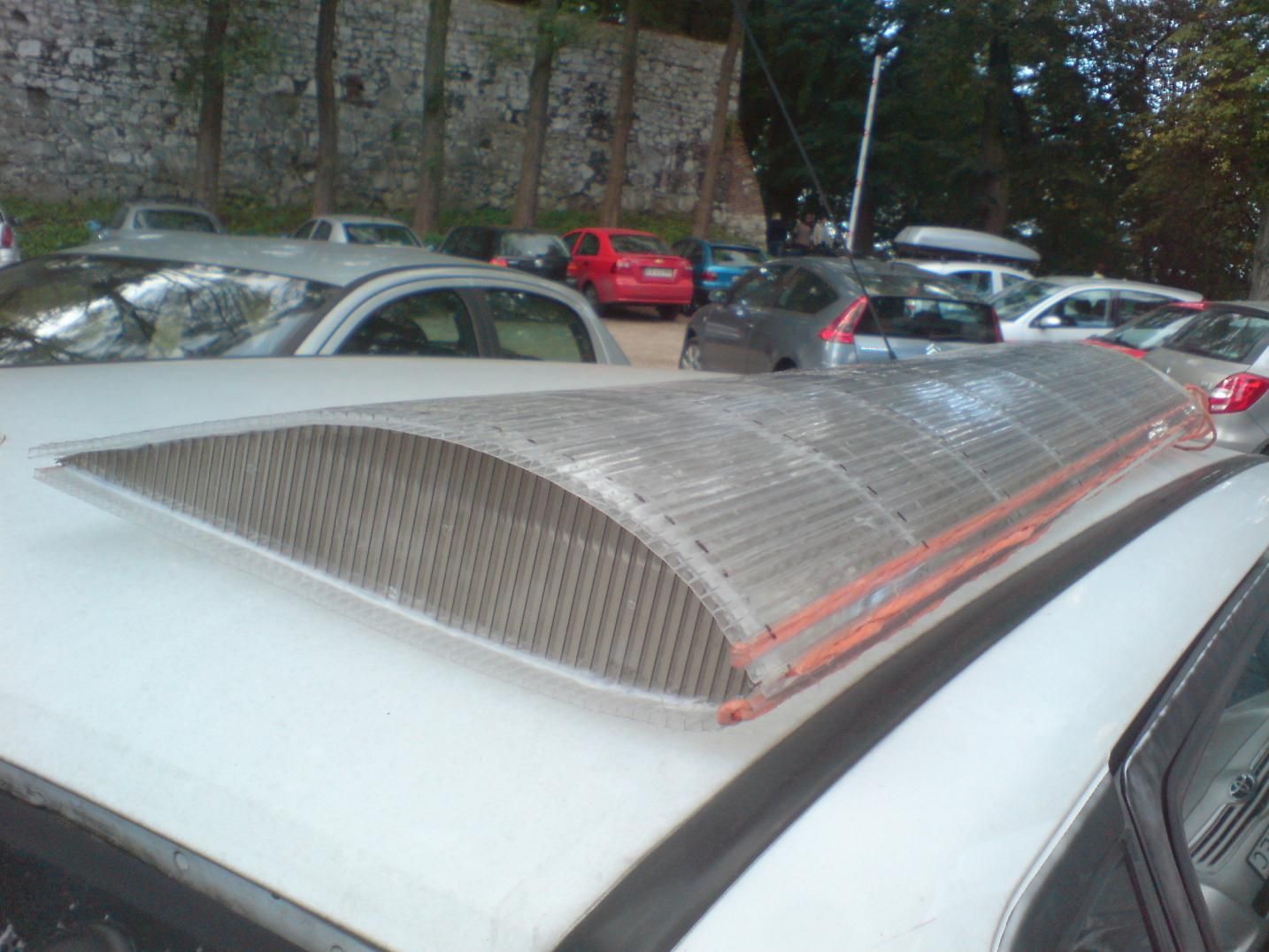 стоит на парковке приличная машина с открытым окном Exclaim