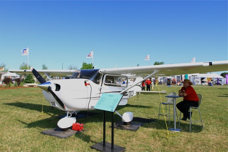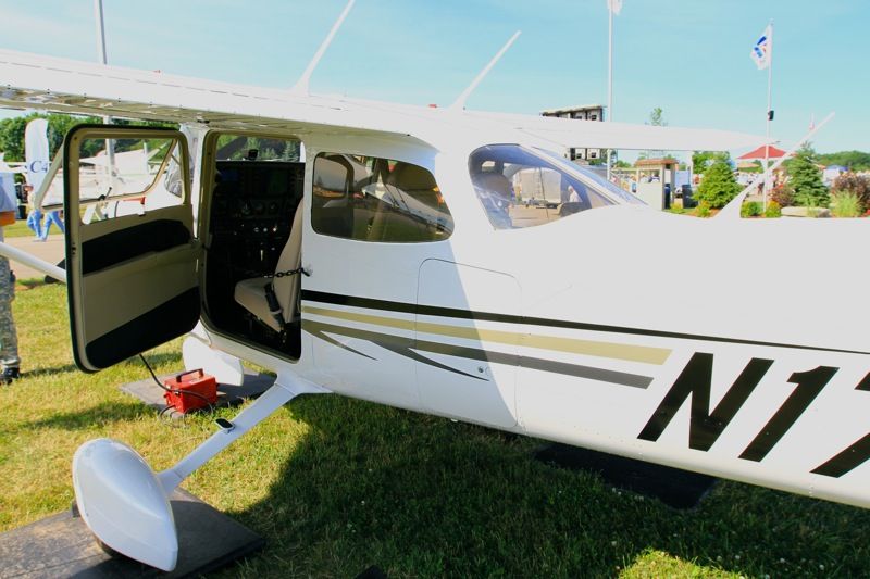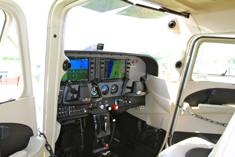 Наземную экспозицию слева от главного входа открывала CESSNA. Первой, естественно, была 172-я. Представители фирмы любезно предоставили нам с сыном посидеть в кабине и оценить классический самолет, классическую копоновку с современной авионикой и отделкой.