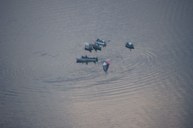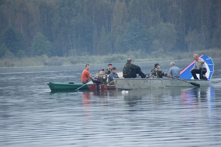Суббота, тридцать минут до захода солнца, дымка, штиль. Подлетаю к любимому Тростянскому озеру, извиняясь, говорю пассажирам, что посадки не будет, зеркало. С утра летал в Тверь, потом еще летал и еще чуть-чуть летал, короче, зеркало на ночь глядя уже перебор. И тут вижу не совсем обычную картину для этого места, точнее совсем не обычную, скопление плав-средств...