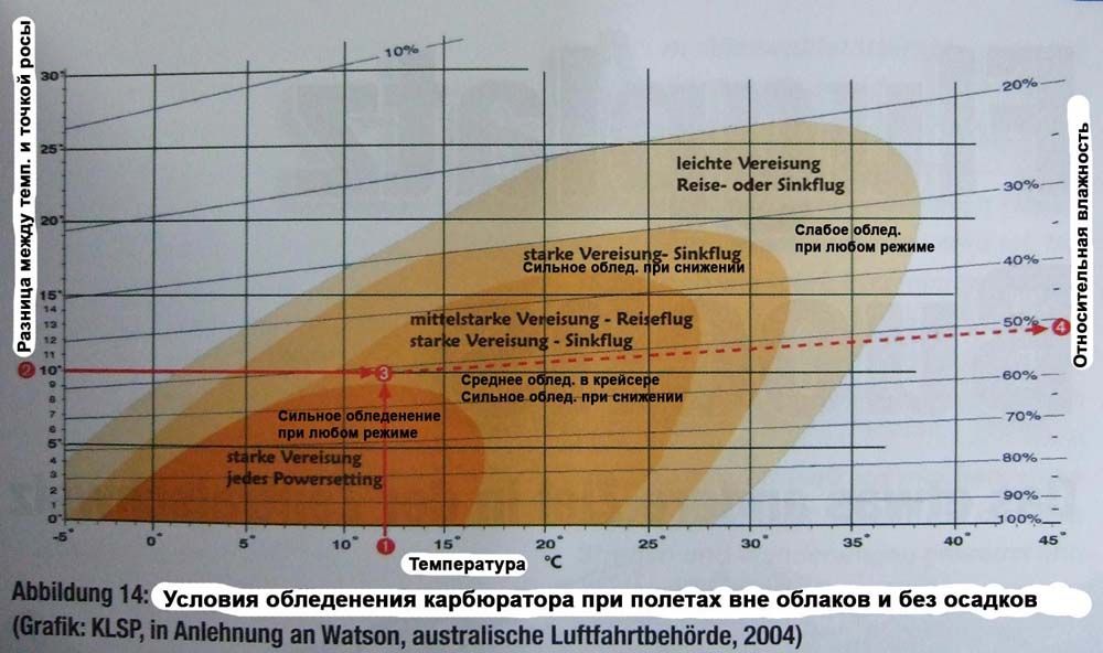 Условия обледенения в карбюраторе связаны с наличием диффузора (трубка вентури, по сути) где воздушный поток ускоряется и создаётся разряжение для засасывания топлива. Во впрысковом моторе, насос обеспечивает подачу топлива для смесеобразования и нет необходимости в диффузоре. Поэтому считается что инжекторные моторы менее (не) обледеневают (по сравнению с карбраторными).Вот полезный график, показывающий возможность обледенения карбюратора. Если в инжекторе может что-то обмёрзнуть, обмёрзнет обязательно. Чревато внезапной остановкой мотора.