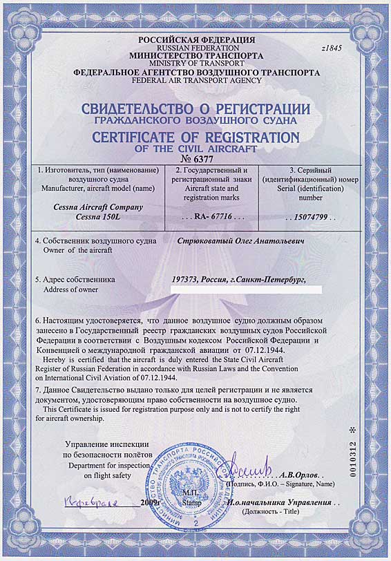 А снятие с реестра FAA произошло именно так, как говорит Булат - как только FAA получил по почте нужный экз. bill of sale - на другой день на сайте появилась соответствующая инфа. Никто мне никаких писем и не слал, и не обязан.