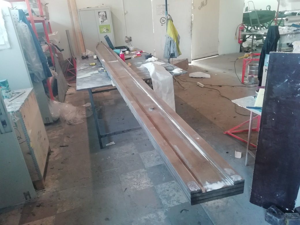 Отформовали нижний капот. Вес 1770 гр. Склеили между собой правую и левую обшивки кабины. Изготовили матрицу для формовки левого лонжерона.