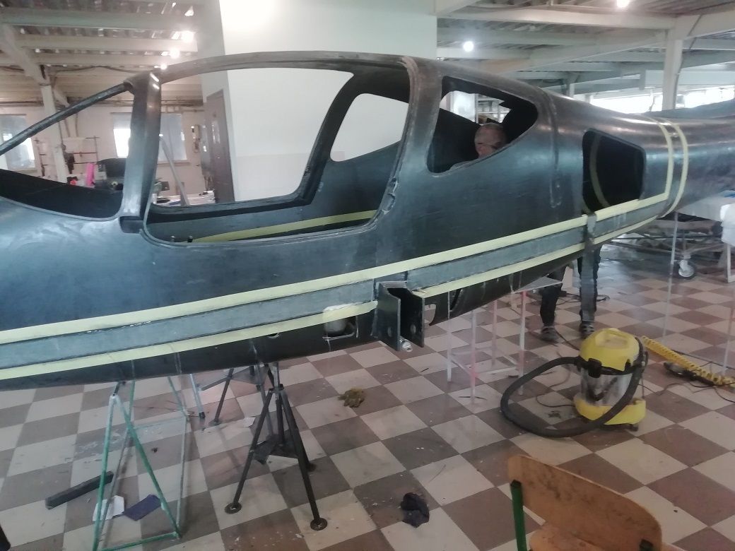 На фото видно, что фюзеляж стоит на домкратах, которые в дальнейшем будут использоваться для обязательной проверки выпуска шасси перед вылетом ( согласно норм CS23\АП23 )