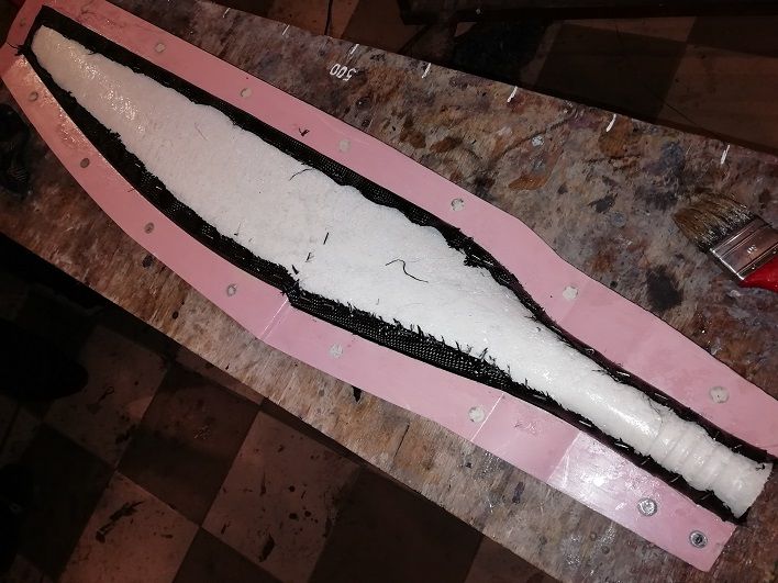 Все части раскроя вырезаны на лазере из углеткани 300г\м2( на балку понадобилось 1050г углеткани )