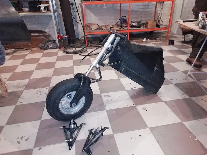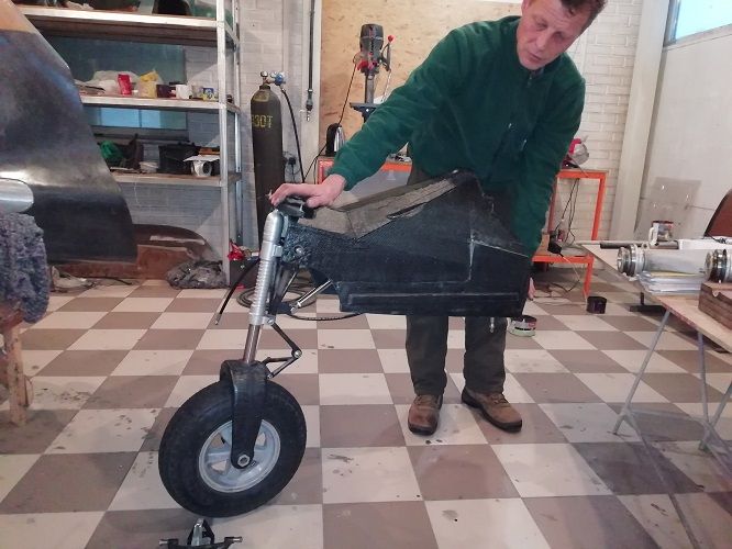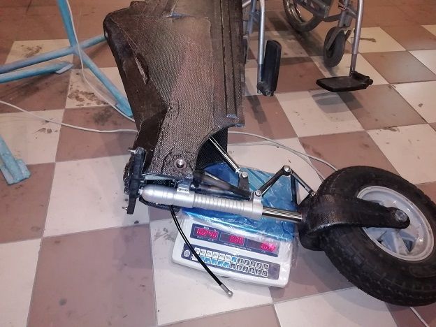 Собрали переднюю стойку в сборе с колесом , амортизатором,  гидроцилиндром, качалками поворота. Подключили гидрошланги и несколько раз убрали - выпустили. Вес этого узла составил 10.26 кг. В этой сборке лишние примерно 1.6 кг, и в дальнейшем в самолетах их не будет. Но пока что, нет времени на переделки, скоро весна - нужно летать.