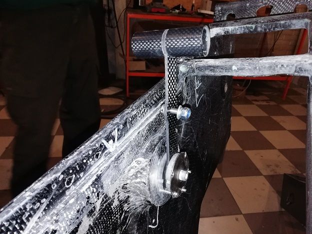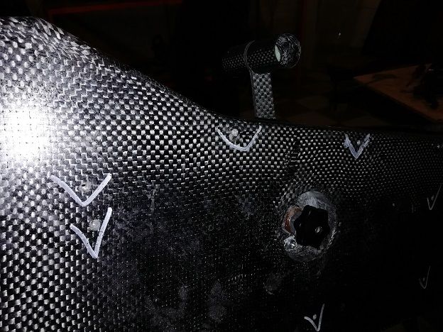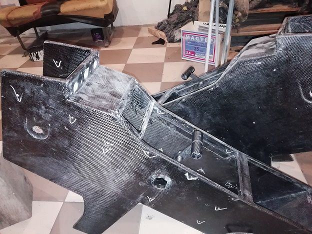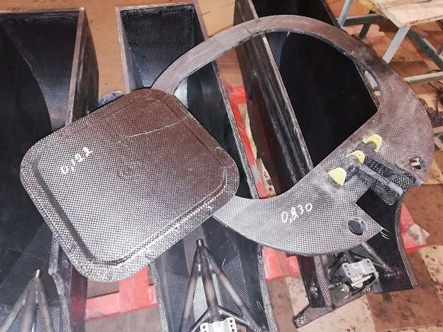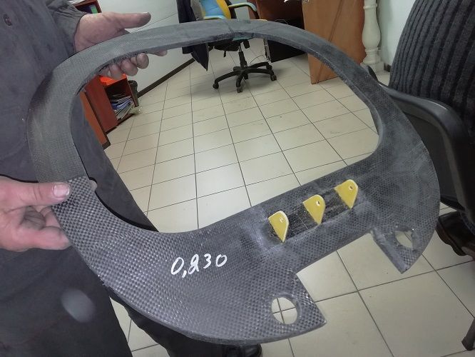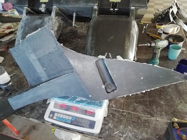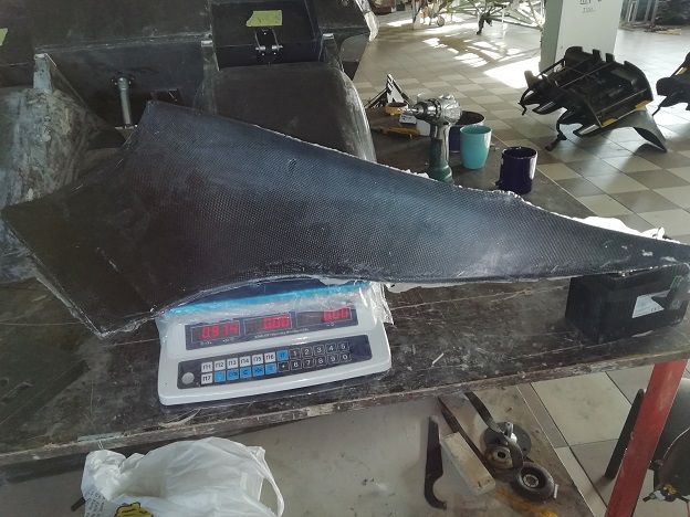 Материал режем на лазере и взвешиваем готовый пенопласт и углеткань в деталях. Только что закончили формовать пол багажника. Углеткань весила 605г, пенопласт не помню.