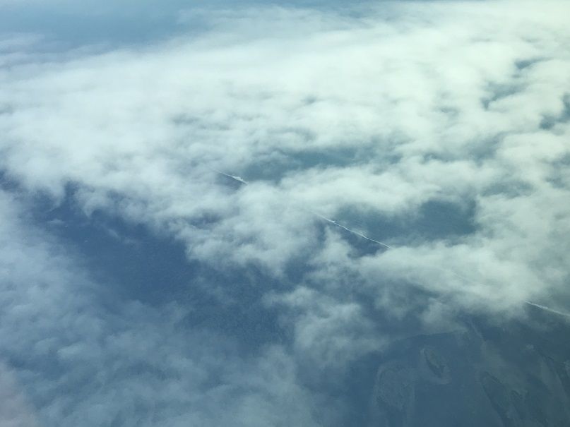 Вот уже полчаса как мы летим над Северной Атлантикой. Впереди пять часов полёта - целая бесконечность. Но ничего, когда-нибудь закончится и она.