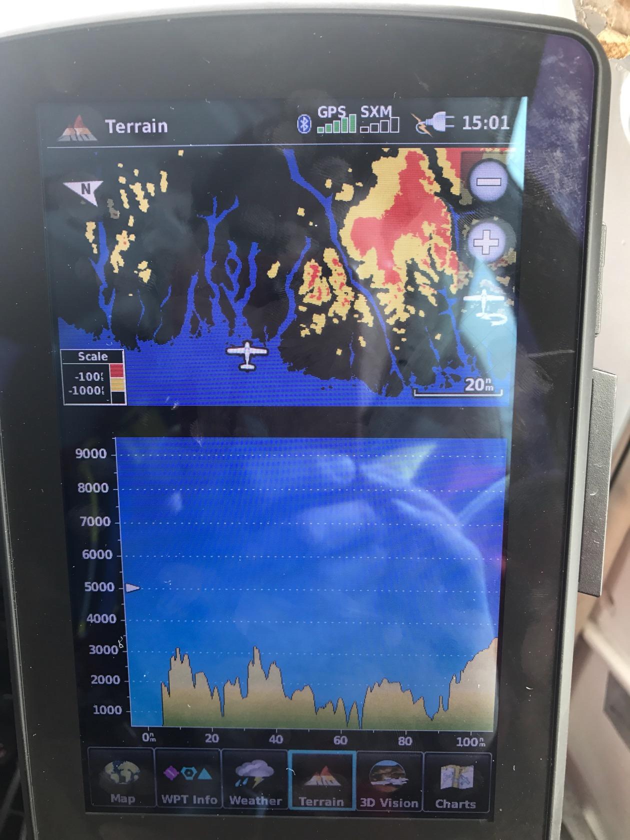 Настроение тревожное. Диспетчерский центр в Монреале (а ближе похоже никого не нашлось) определил нам высоту полёта в 7000 футов, т.е. как раз в центре той самой зоны обледенения. С диспетчером не поспоришь. Пилоты обязаны выполнять все их указания, но от этого легче не становилось. Опасность была реальной и совсем не шуточной.